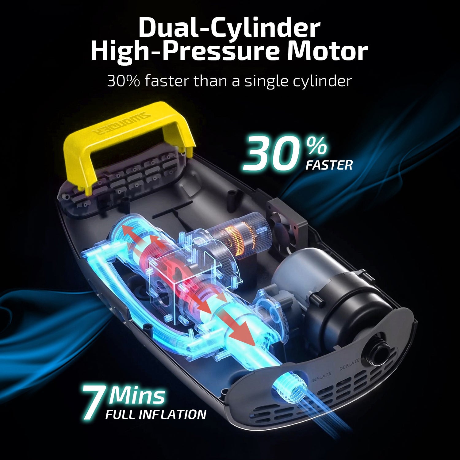 - 30% Faster Inflation: Dual-piston for increased airflow without overheating