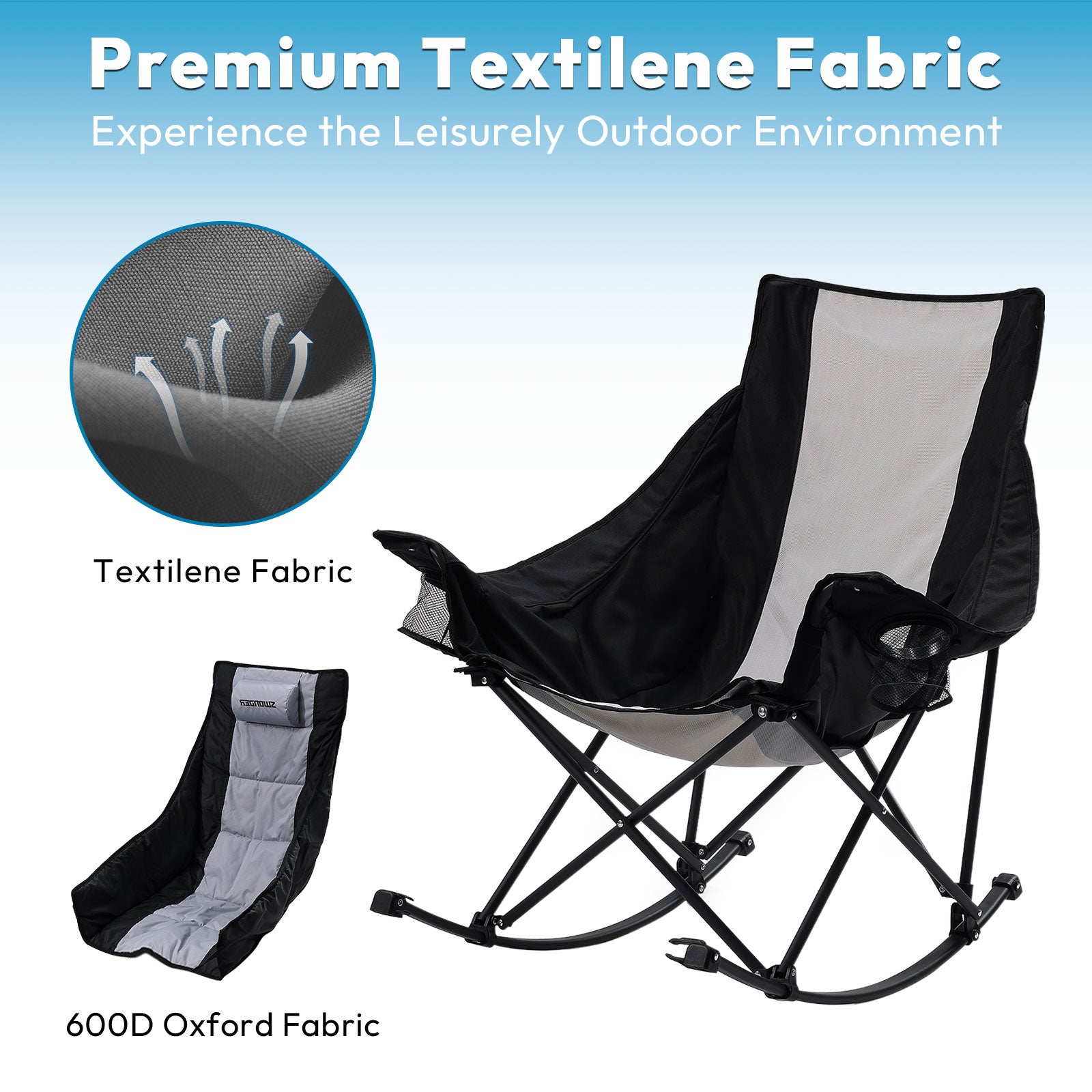- ⛺Relaxing Rocking Motion: This camping chair's unique rocking mechanism provides a soothing and gentle motion, ideal for creating a peaceful and relaxing outdoor experience. Whether you're at a campsite, in your backyard, or at a park, the rocking feature enhances your comfort by allowing you to sway back and forth effortlessly.